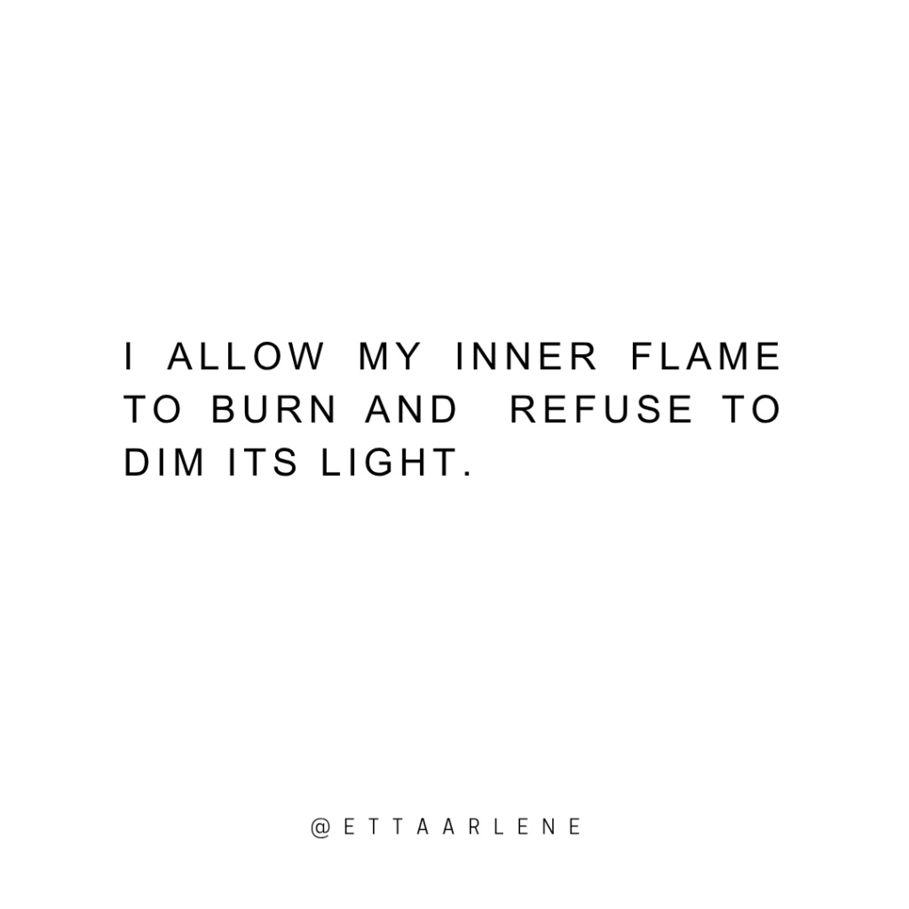 I allow my inner fire to burn and refuse to dim its light.